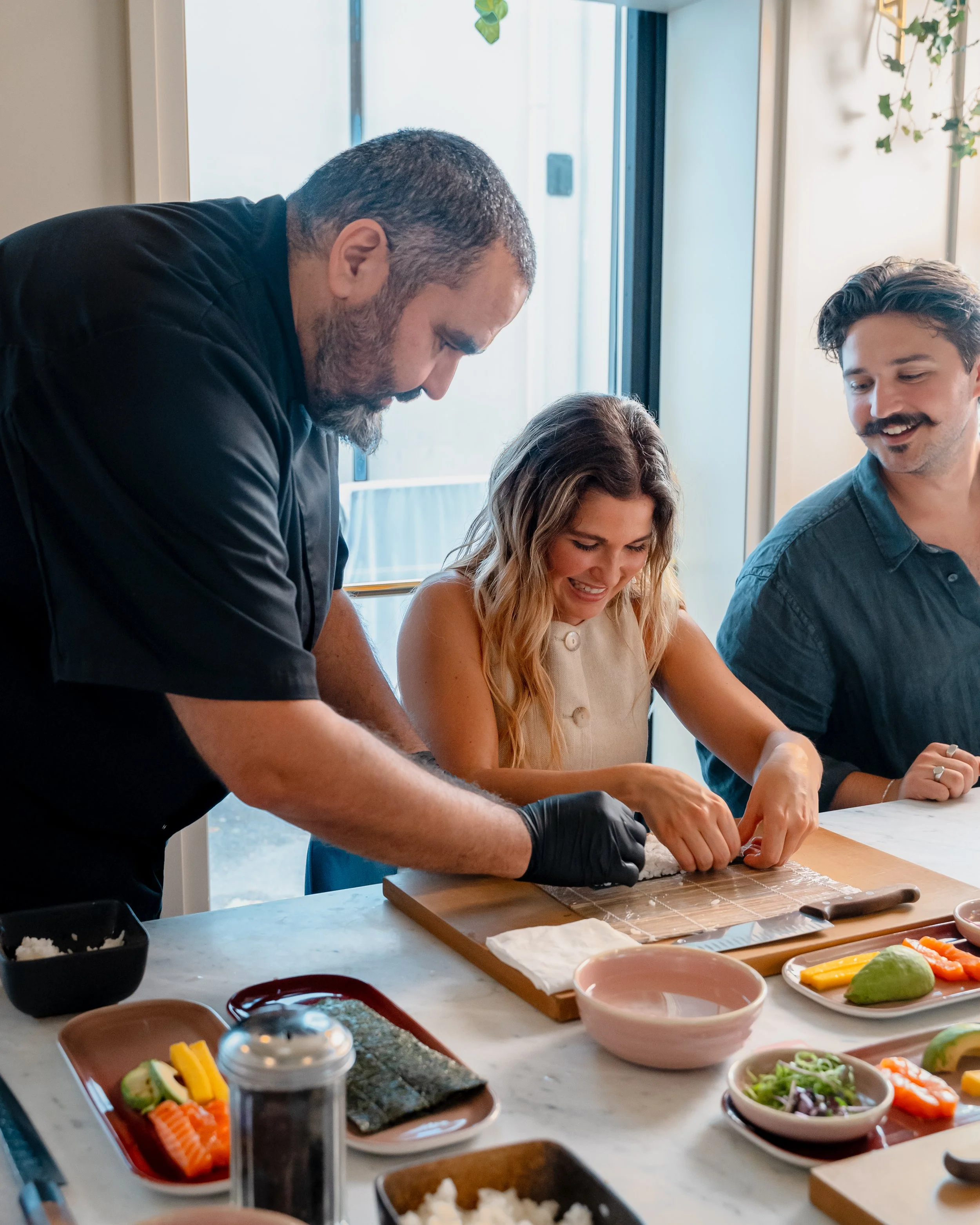 Etter introduksjonen får du trene på å lage 3 retter: Futomaki, Uramaki og Poke Bowl.
